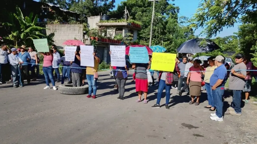 Además de exigir acciones de remediación ambiental, los pobladores reclamaron la rehabilitación de la carretera, la cual —aseguraron— presenta severos daños por el tránsito de unidades pesadas relacionadas con las actividades de Pemex.