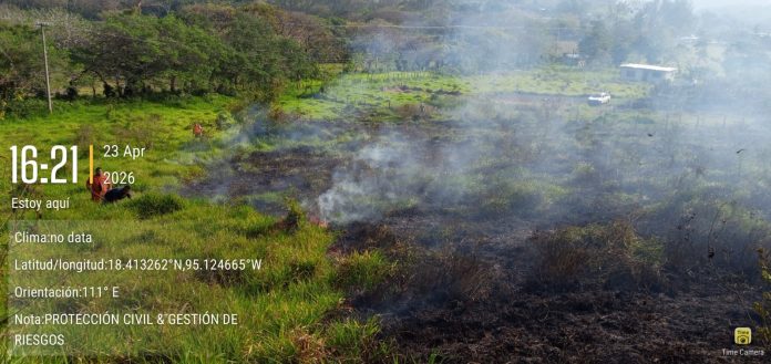 Catemaco, Ver. — El Ayuntamiento de Catemaco, encabezado por Manuel Eduardo Toscano, informó que, a través de la Unidad Municipal de Protección Civil y Gestión de Riesgos, se atendió de manera oportuna un incendio de pastizal registrado el pasado 23 de abril.