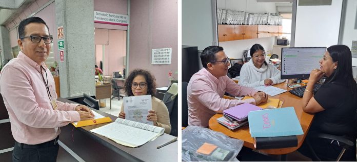 El regidor séptimo del Ayuntamiento de San Andrés Tuxtla, Edgardo Cecilio Ramírez Sosa, acudió al Congreso del Estado de Veracruz con el propósito de entregar expedientes de instituciones educativas que continúan con el proceso de regularización de sus escrituras, así como para dar seguimiento a diversos trámites relacionados con escuelas de distintos niveles del municipio.