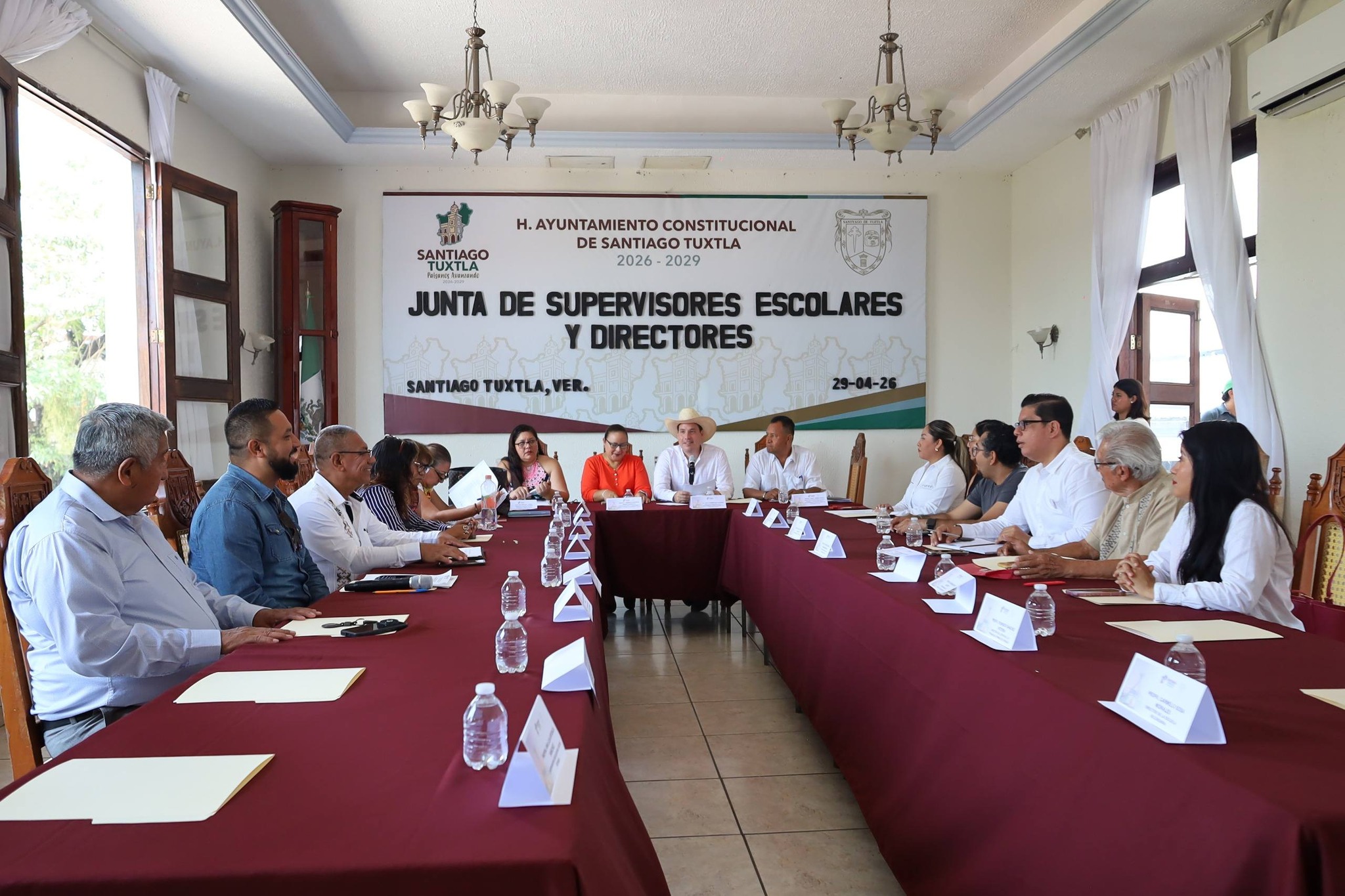 Santiago Tuxtla, Ver.- Con el firme compromiso de atender de manera directa las necesidades del sector educativo, el alcalde Noé Domínguez Cadena encabezó una importante reunión informativa y de trabajo con supervisores escolares de todos los niveles educativos del municipio, consolidando un espacio de diálogo, coordinación institucional y construcción de soluciones para mejorar las condiciones de los planteles escolares del municipio.