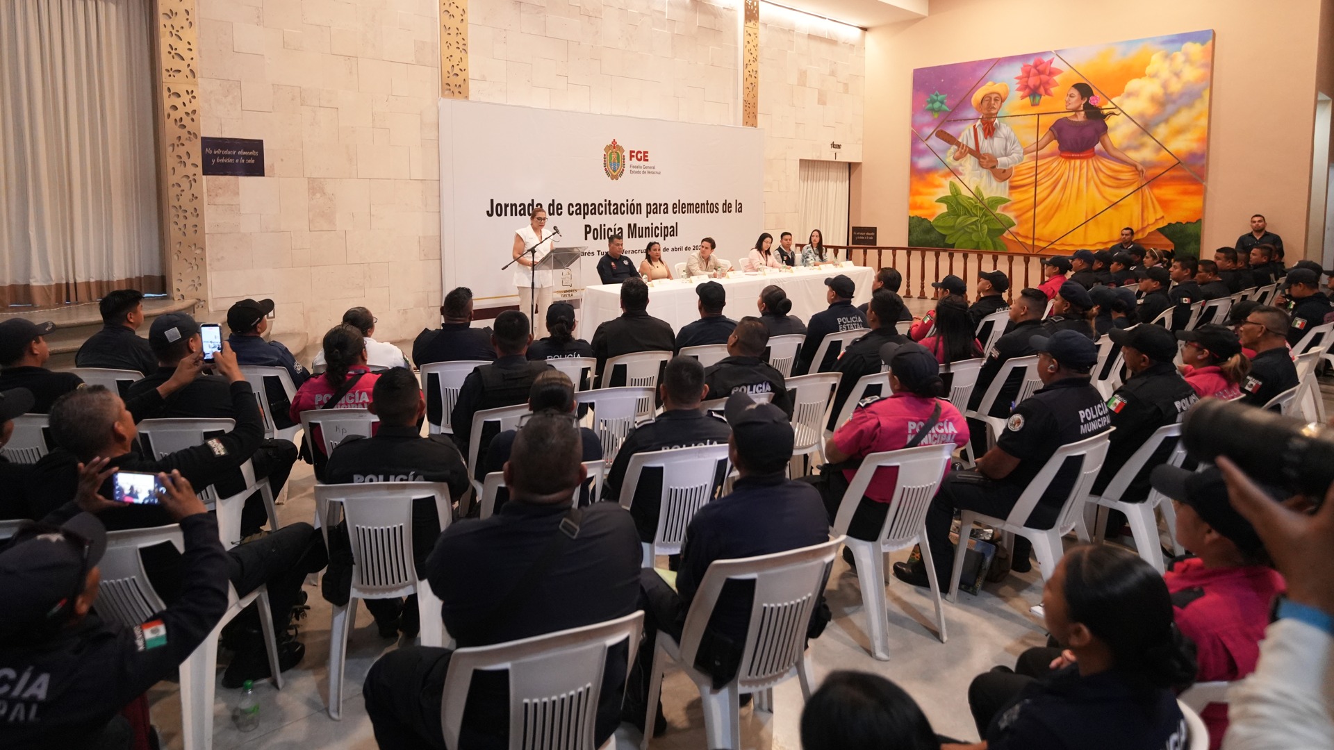 Catemaco, Ver.— Como parte del cierre de la Jornada de Capacitación para Elementos de la Policía Municipal, elementos de Catemaco participaron en el examen de evaluación realizado en el Teatro Municipal de San Andrés Tuxtla.