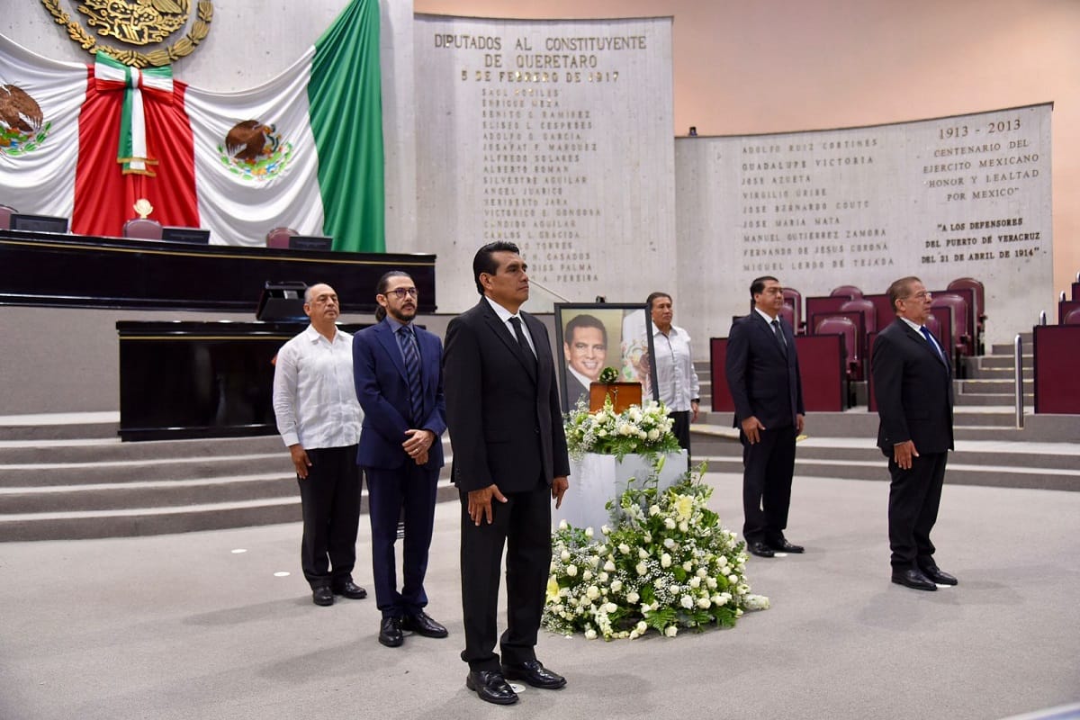 Rindieron la primera guardia de honor los diputados Esteban Bautista Hernández, Carlos Marcelo Ruiz Sánchez, Héctor Yunes Landa, Adrián Sigfrido Ávila Estrada y Ramón Díaz Ávila, integrantes de la Jucopo, así como el subsecretario de Gobierno y exdiputado local, José Manuel Pozos Castro.