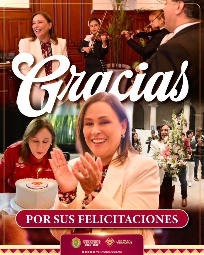 Xalapa, Ver.— La gobernadora del estado, Rocío Nahle García, expresó su agradecimiento a las personas que le hicieron llegar felicitaciones y buenos deseos con motivo de su cumpleaños.