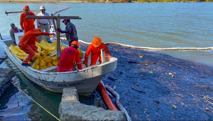 De acuerdo con la dependencia, Pemex notificó que el incidente se originó en el oleoducto de 30 pulgadas Poza Rica–Madero, a la altura del municipio de Álamo Temapache, donde personal especializado mantiene trabajos continuos de reparación y limpieza.